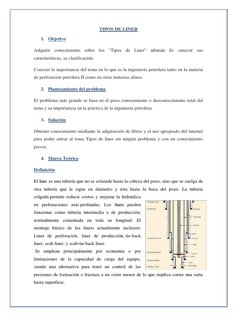 Adquirir conocimiento sobre los Tipos de Liner adems de conocer sus