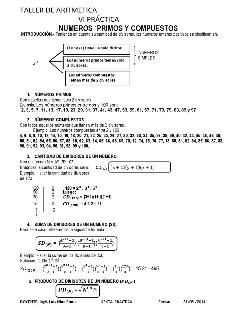 INTRODUCCIN.- Teniendo en cuenta su cantidad de divisores, los nmeros enteros positivos se clasifican en: