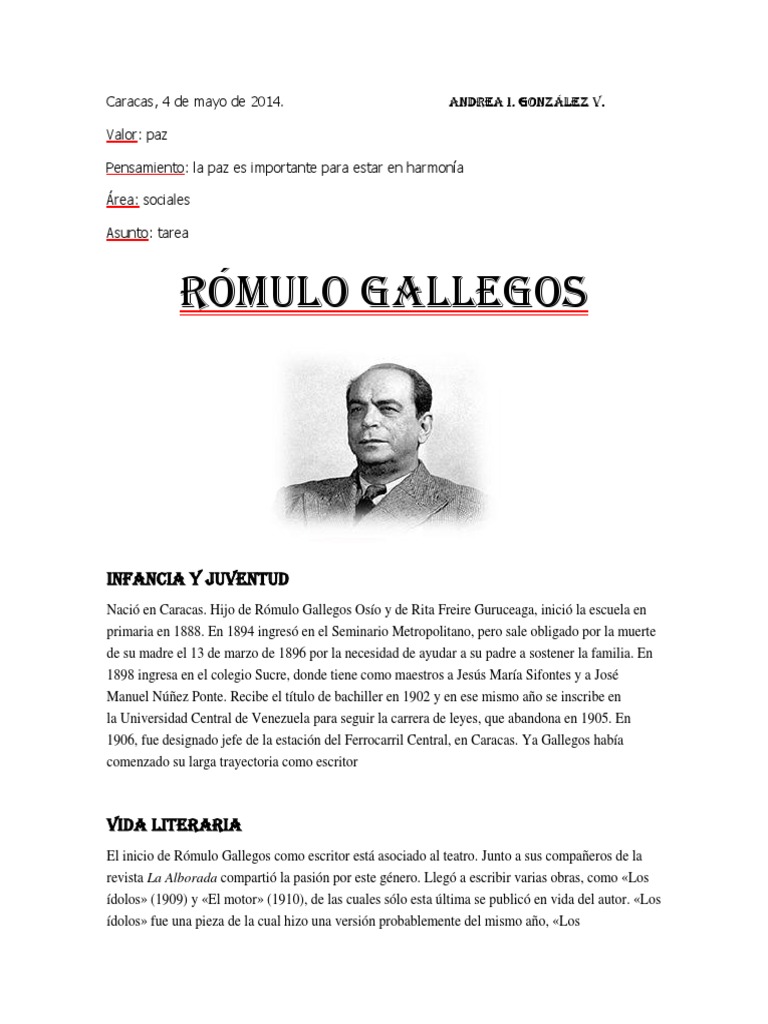Naci en Caracas. Hijo de Rmulo Gallegos Oso y de Rita Freire Guruceaga, inici la escuela en