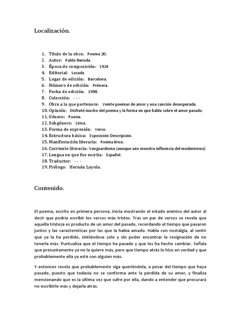 1. Ttulo de la obra: Poema 20.