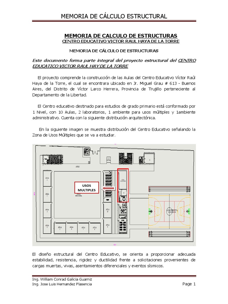 Este documento forma parte integral del proyecto estructural del CENTRO