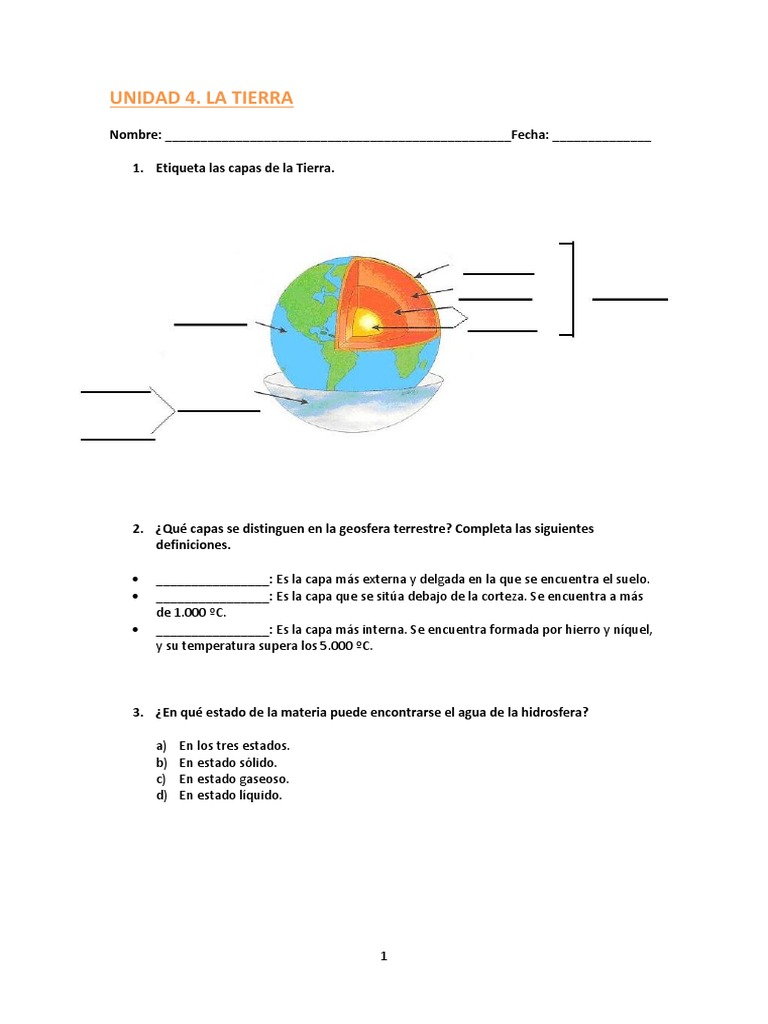 2. Qu capas se distinguen en la geosfera terrestre? Completa las siguientes