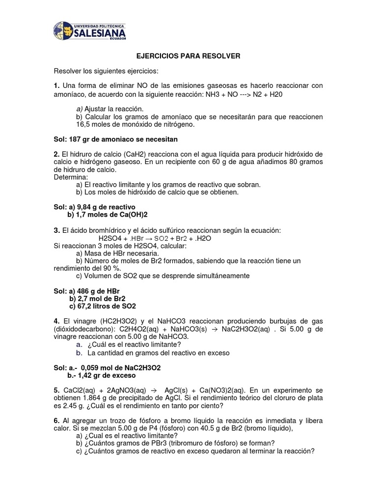 Sol: a) 9,84 g de reactivo