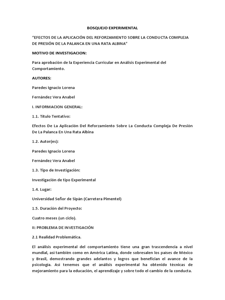 reforzamiento sobre la conducta complejo de presin de la palanca en una rata albina