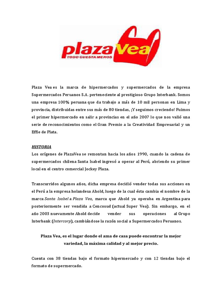 de supermercados denominado Plaza Vea Super. Estas tiendas ofrecen una