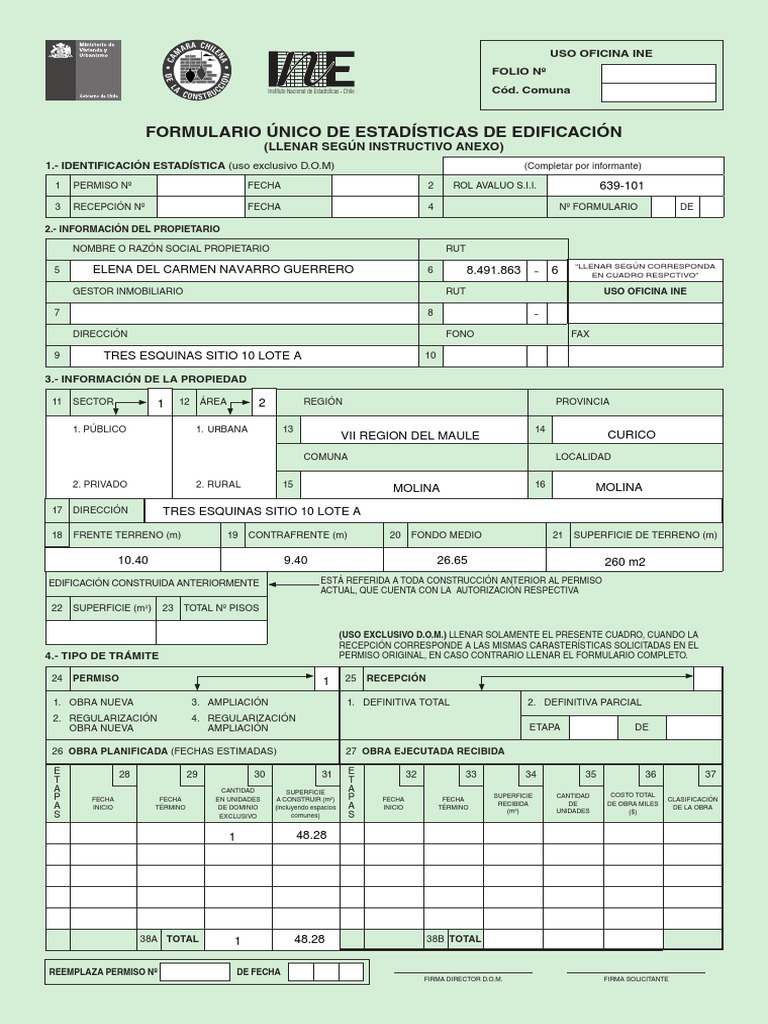 FORMULARIO NICO DE ESTADSTICAS DE EDIFICACIN