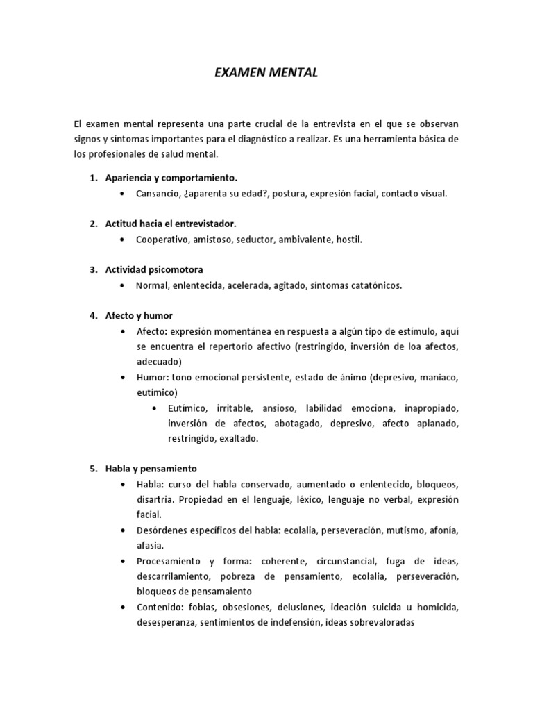 El examen mental representa una parte crucial de la entrevista en el que se observan