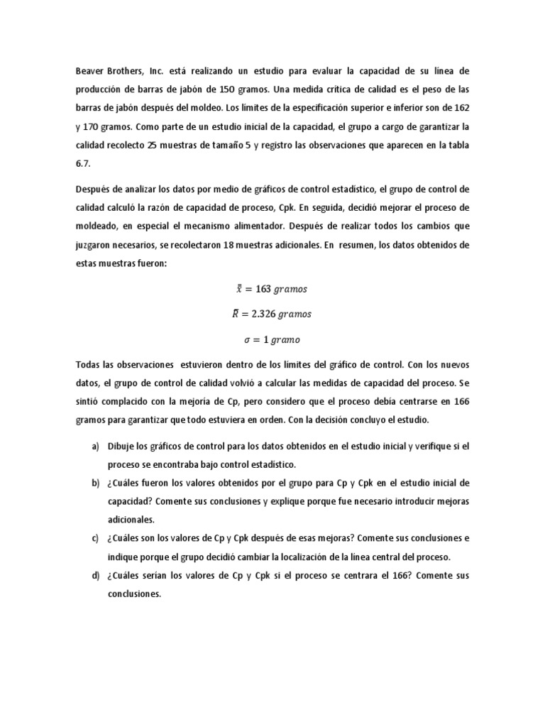 produccin de barras de jabn de 150 gramos. Una medida crtica de calidad es el peso de las