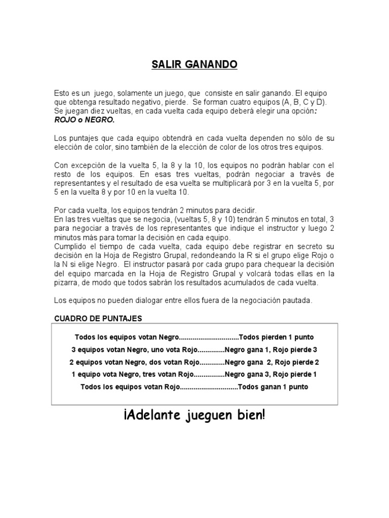 Aqu@ la instrucci#n no es ganarle a los otros equipos, sino salir ganando. Se indica