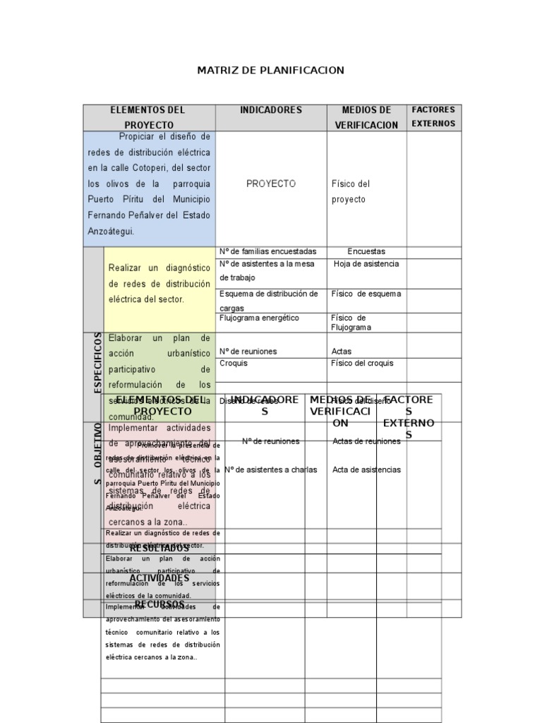 MATRIZ DE PLANIFICACION