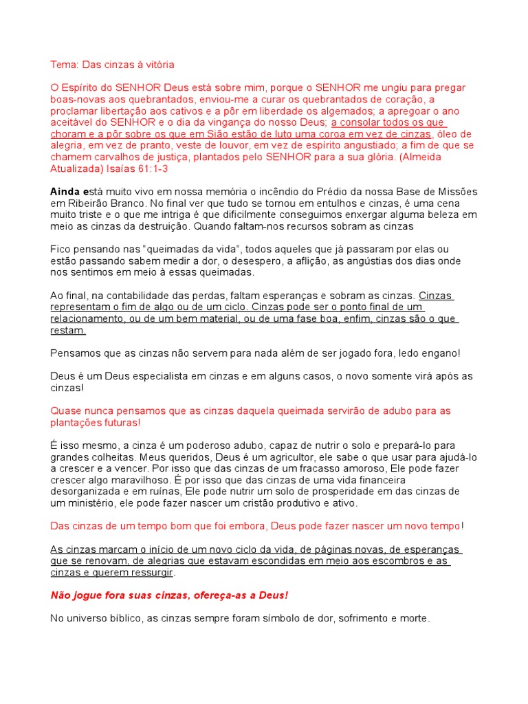 No universo bb%ico, as cinzas sempre )oram smbo%o de dor, so)rimento e morte+