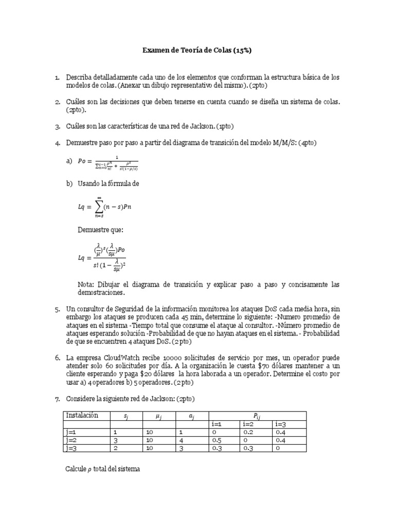 Examen de Teora de Colas (15%)