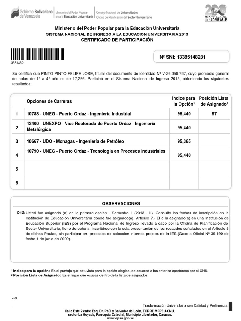 1 10788 - UNEG - Puerto Ordaz - Ingeniera Industrial 95,440 87