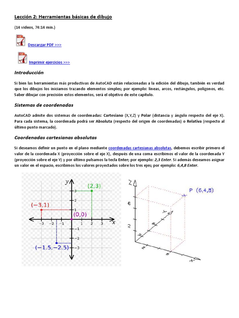 AutoCAD admite dos sistemas de coordenadas: Cartesiano (X,Y,Z) y Polar (distancia y ngulo respecto del eje X).