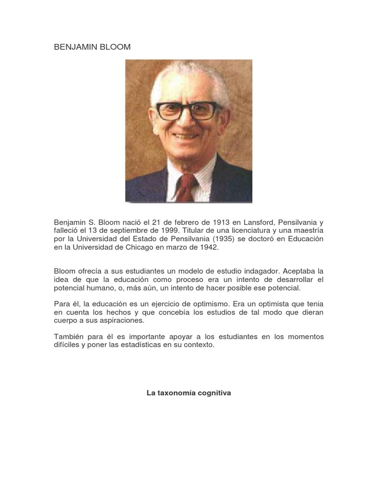 Benjamin S. Bloom naci el 21 de febrero de 1913 en Lansford, Pensilvania y