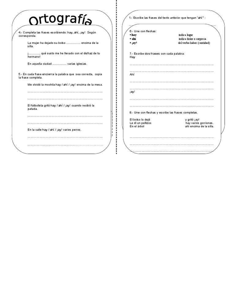 4.- Completa las frases escribiendo: hay, ah, ay! Segn