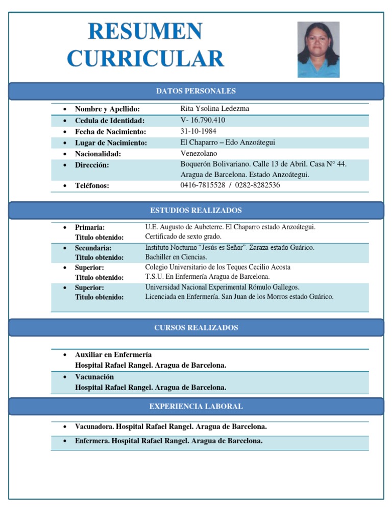 Licenciada en Enfermera. San Juan de los Morros estado Gurico.