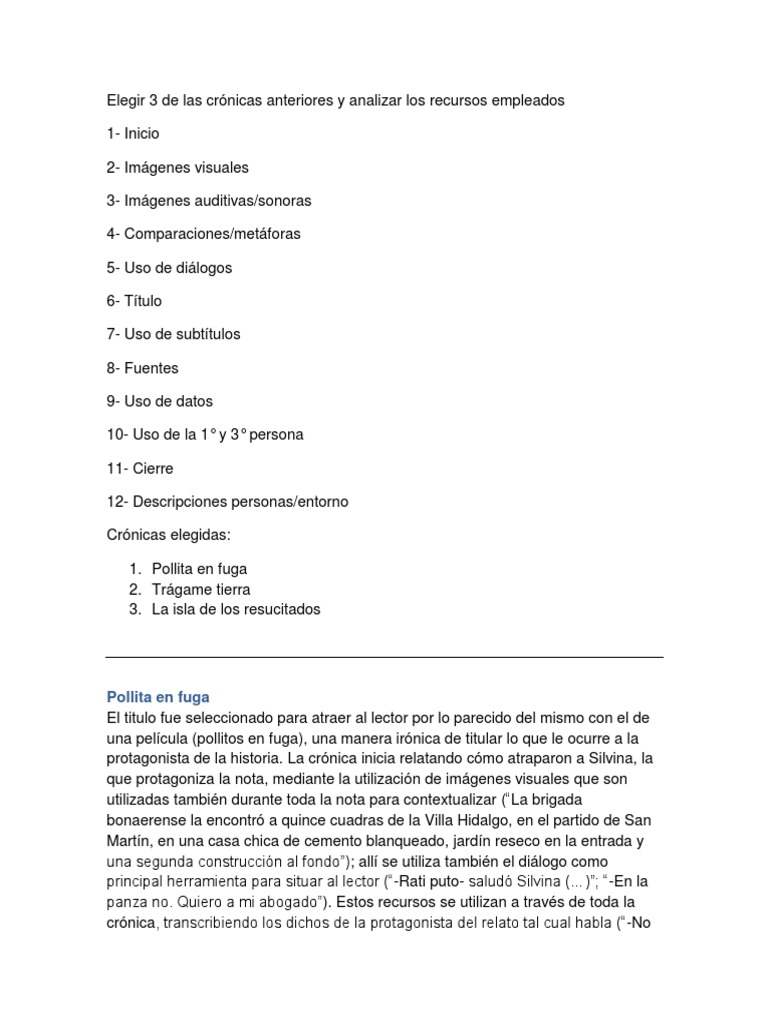 Elegir 3 de las crnicas anteriores y analizar los recursos empleados