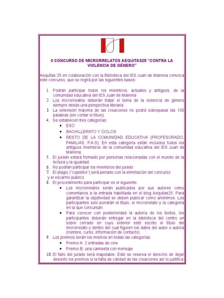 Aequitas 25 en colaboracin con la Biblioteca del IES Juan de Mairena convoca