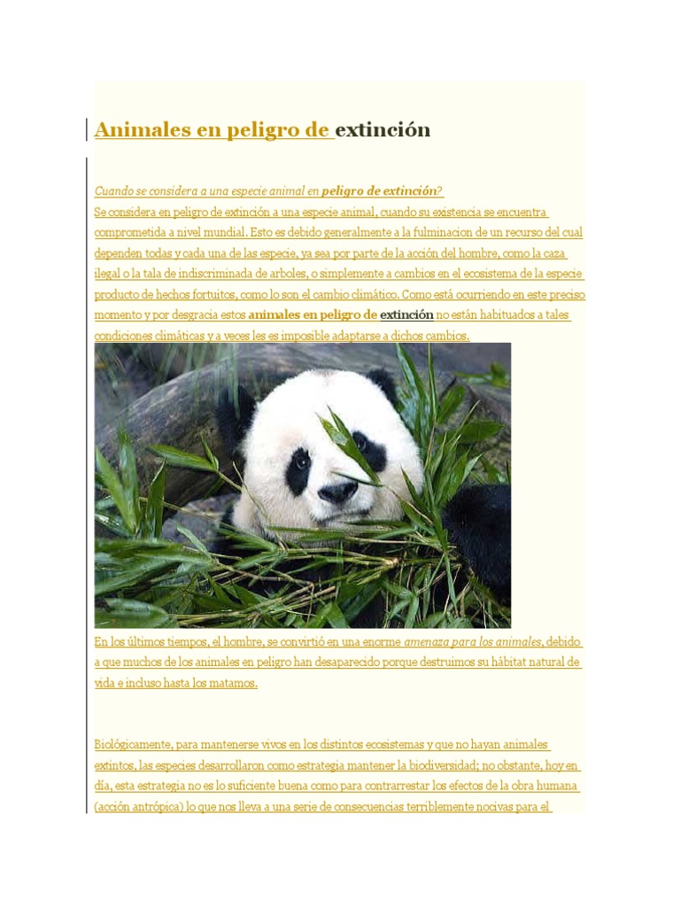 a extincin de los animales y el peligro de extincion de los animales es un problema que