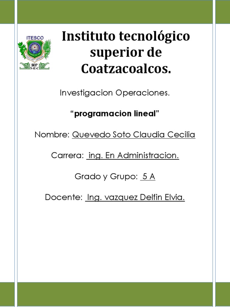 nombre de programacin lineal.