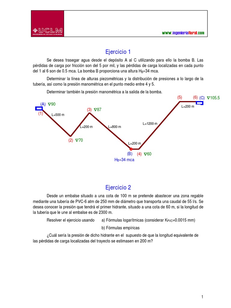 En la red de la figura, realizada con tubera de PVC-6 atm, las prdidas de carga localizadas