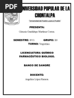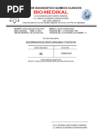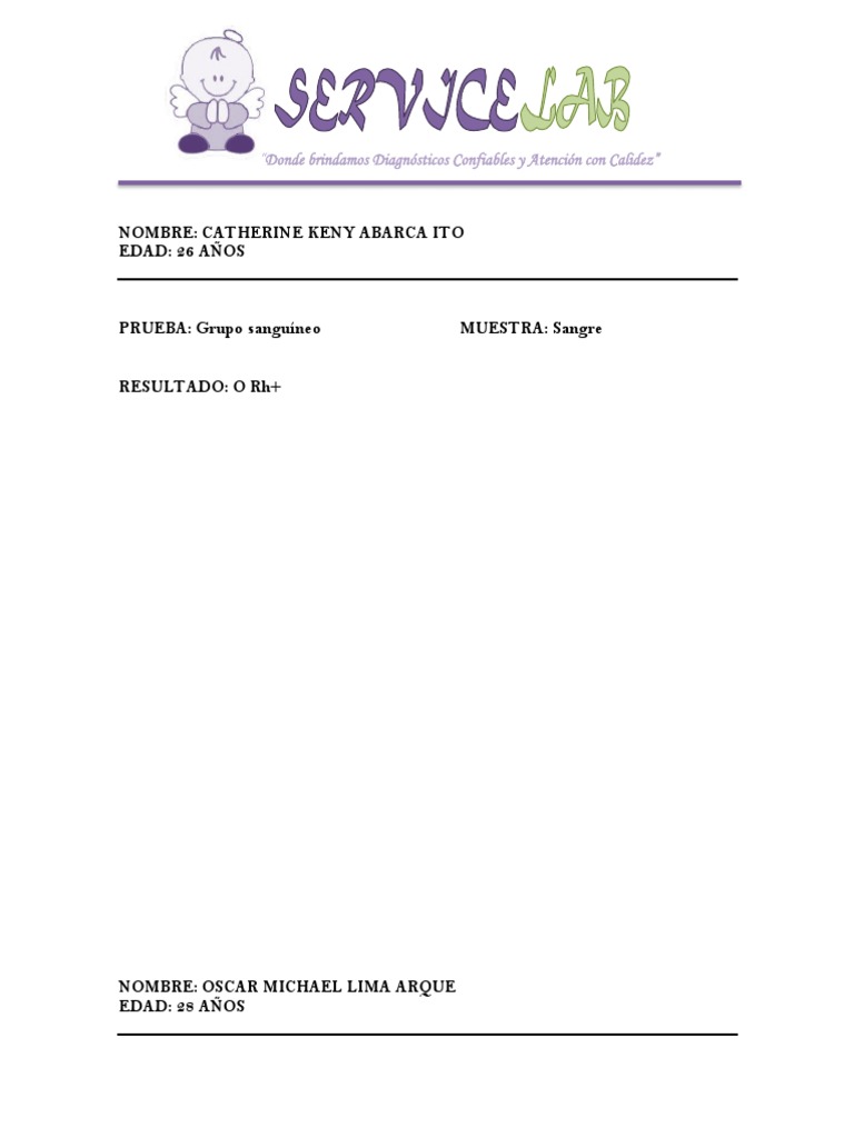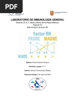 El documento presenta los resultados de las pruebas de grupo sanguíneo de 10 personas. Todos los individuos, cuyas edades van desde 17 a 33 años, dieron positivo al grupo sanguíneo O y al factor Rh+.