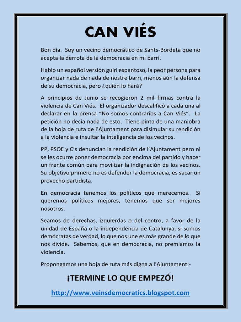 Bon da. Soy un vecino democrtico de Sants-Bordeta que no