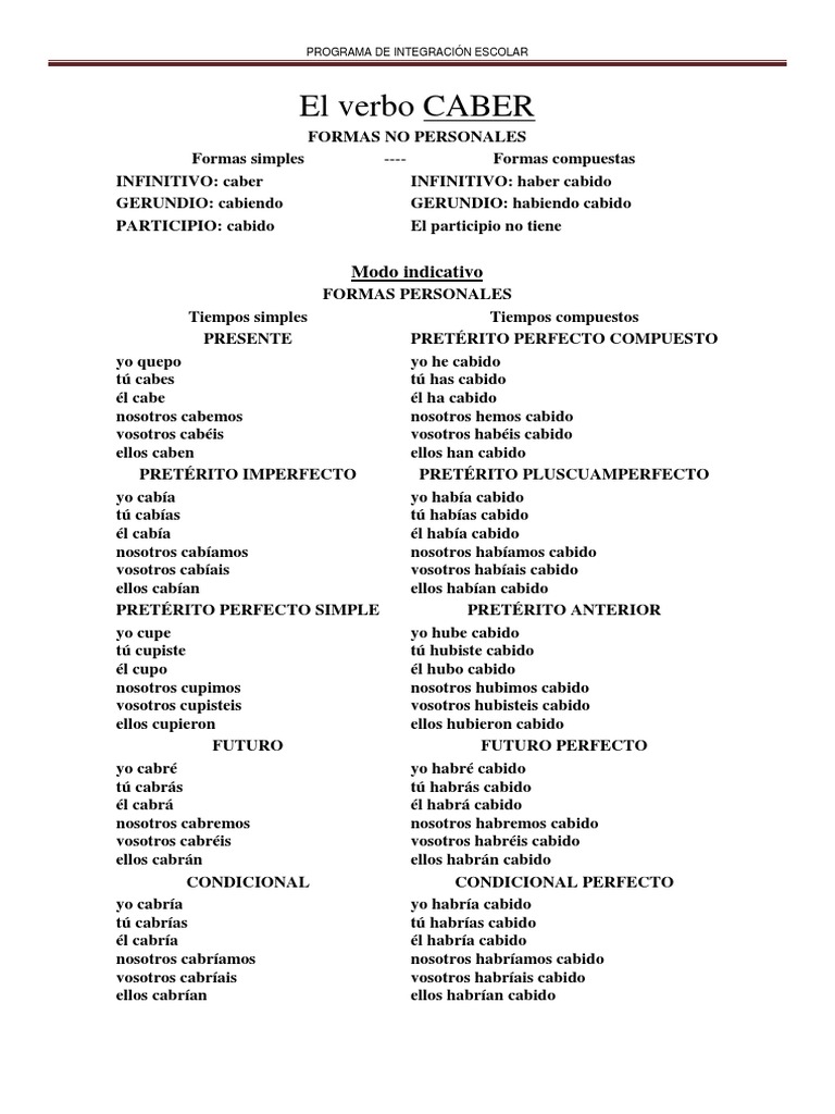El verbo CABER
