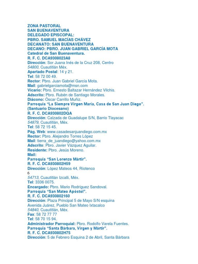 Vicario: Pbro. Ernesto Baltazar Hernndez Vilchis.