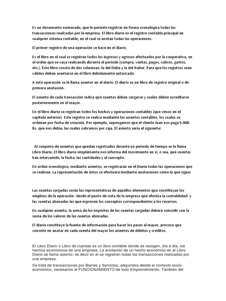 transacciones realizadas por la empresa. El libro diario es el registro contable principal en
