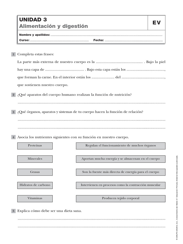 Asocia los nutrientes siguientes con su funcin en nuestro cuerpo.