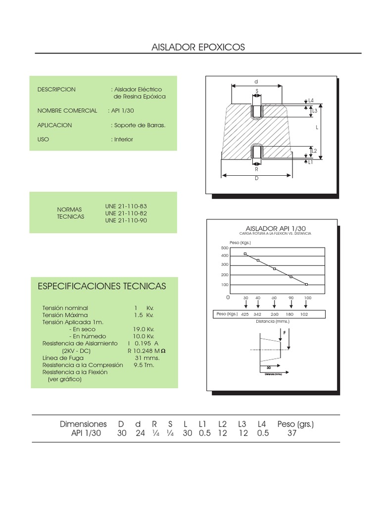 CARGA ROTURA A LA FLEXION VS. DISTANCIA
