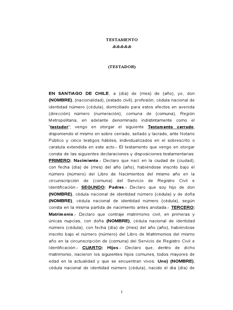 EN SANTIAGO DE CHILE, a (da) de (mes) de (ao), yo, don