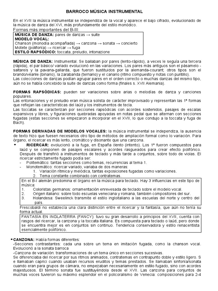 En el XVII la msica instrumental se independiza de la vocal y aparece el bajo cifrado, evolucionado de