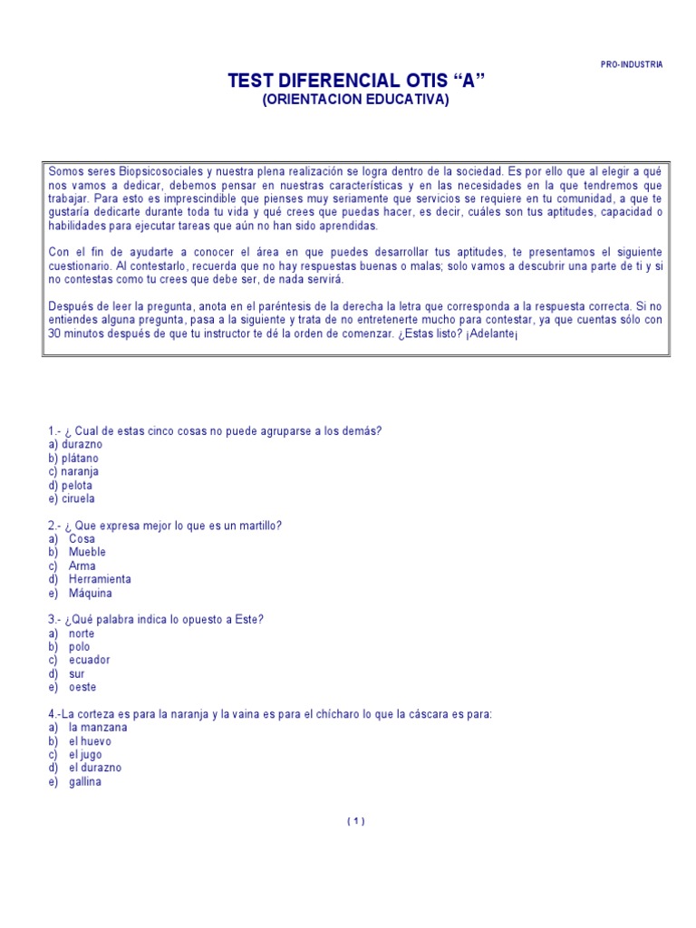 CLAVE DEL TEST DE INTELIGENCIA OTIS A