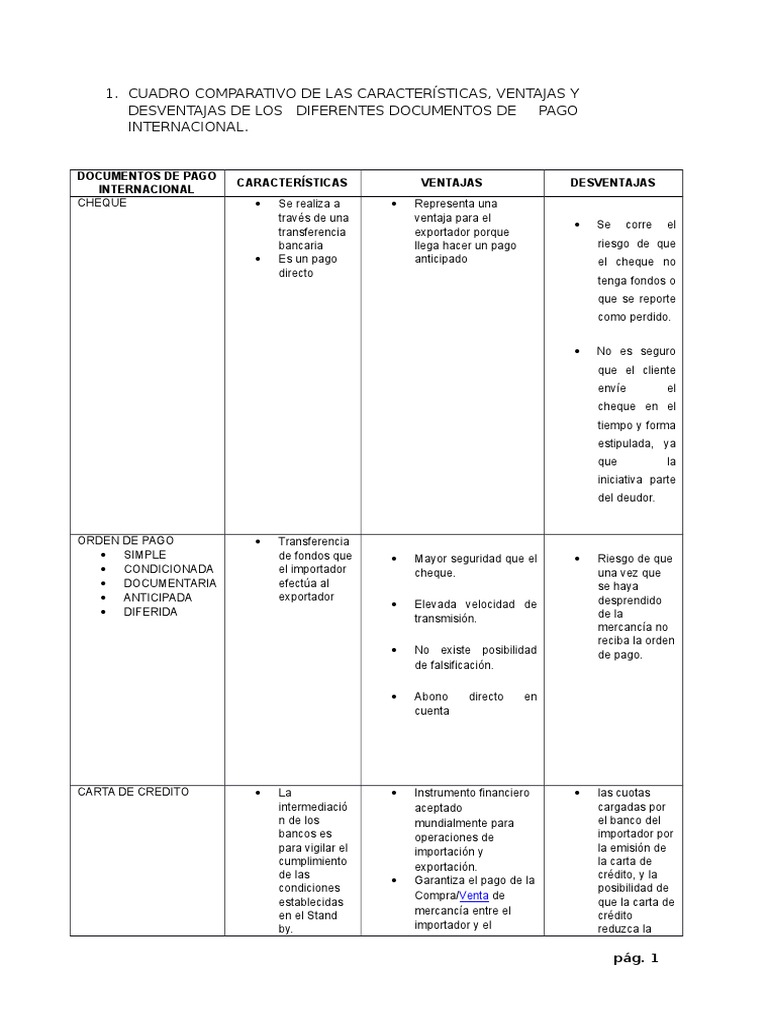 1. CUADRO COMPARATIVO DE LAS CARACTERSTICAS, VENTAJAS Y