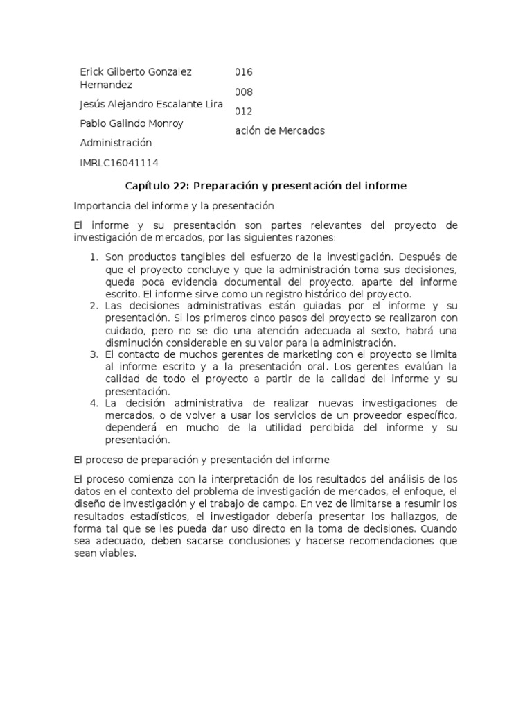 El proyecto de investigacin de mercados debe presentarse por completo a la