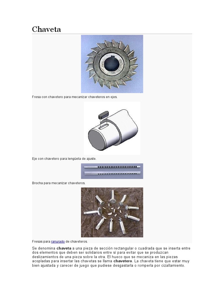Se denomina chaveta a una pieza de seccin rectangular o cuadrada que se inserta entre