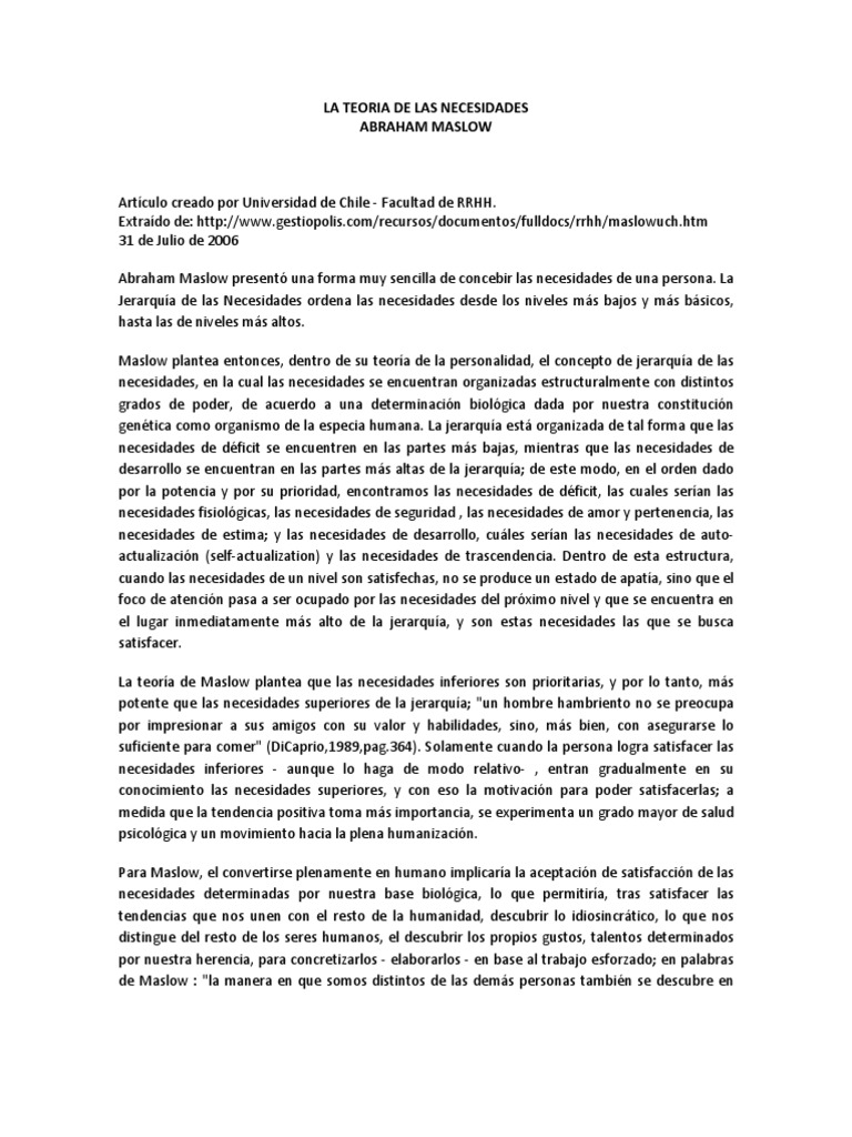 De acuerdo con la estructura ya comentada, las necesidades identificadas por Maslow son:
