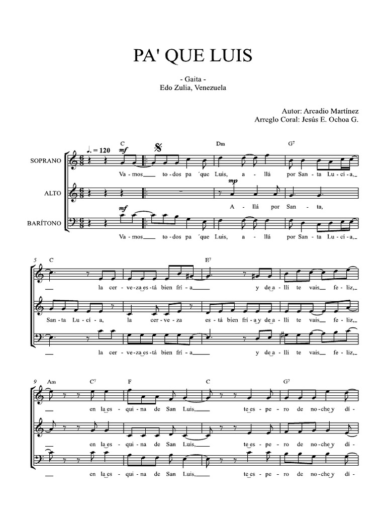 _ Va- mos to-dos pa’ “que Luis, 8 - Ib por San - @ Lu -ci-a,