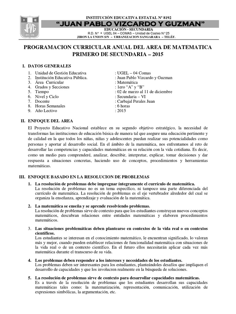 PROGRAMACION CURRICULAR ANUAL DEL AREA DE MATEMATICA