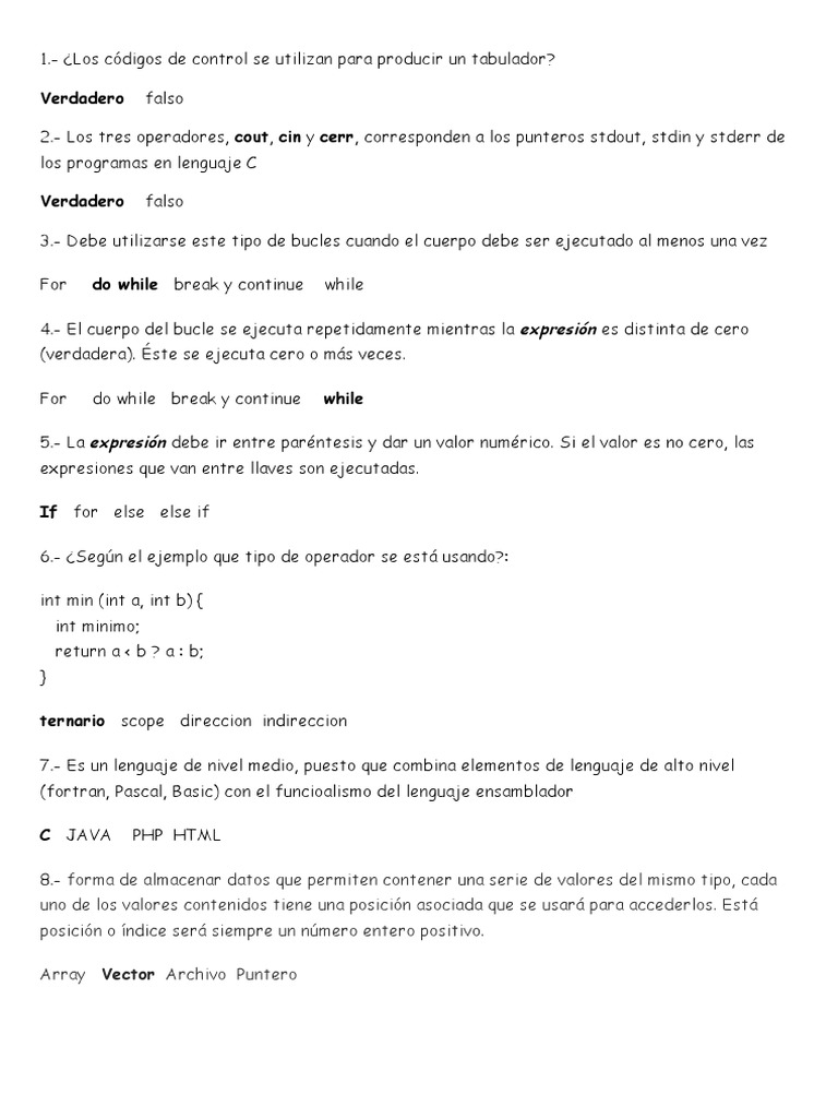 1.- Los cdigos de control se utilizan para producir un tabulador?