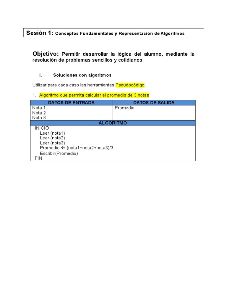 Sesin 1: Conceptos Fundamentales y Representacin de Algoritmos