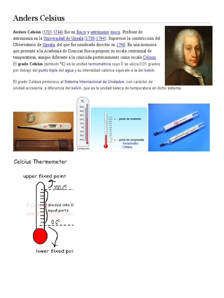 Anders Celsius (1701-1744) fue un fsico y astrnomo sueco. Profesor de