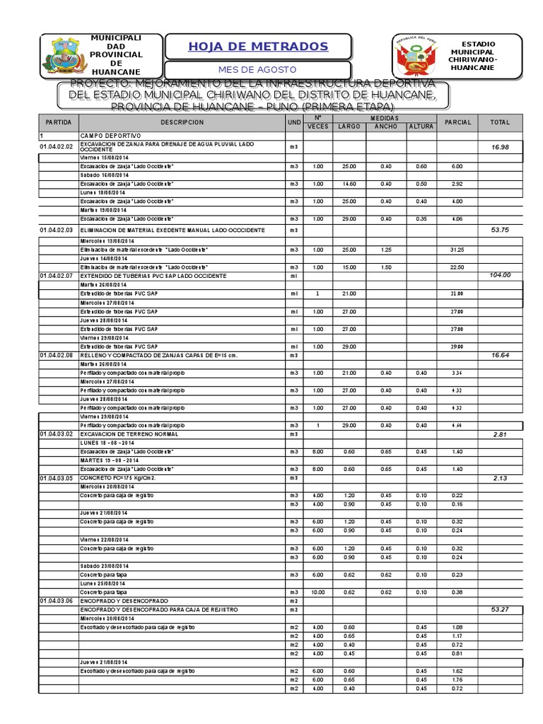 PROYECTO: MEJORAMIENTO DEL LA INFRAESTRUCTURA DEPORTIVA DEL ESTADIO MUNICIPAL CHIRIWANO DEL DISTRITO DE HUANCANE, PROVINCIA DE HUANCANE PUNO