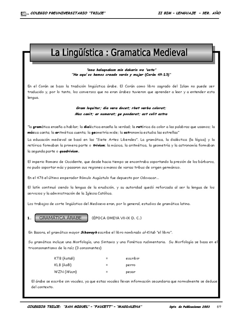 Los trabajos de corte lingstico del Medioevo eran, por lo general, estudios de gramtica latina.