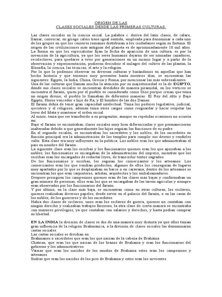 CLASES SOCIALES DESDE LAS PRIMERAS CULTURAS.