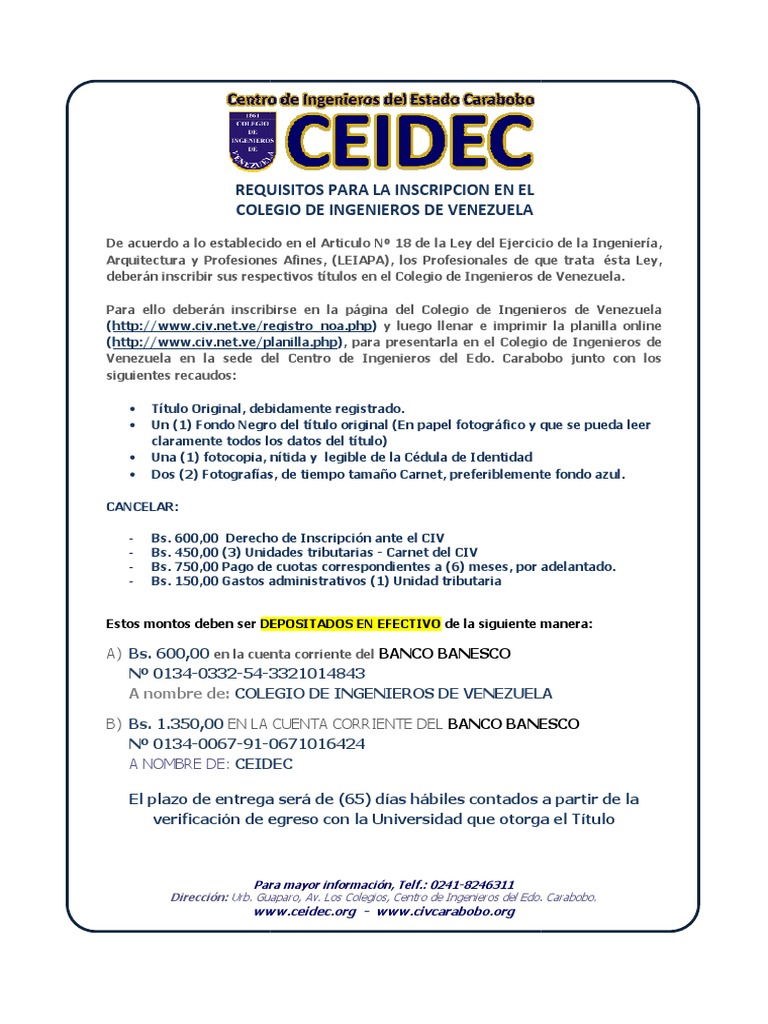 Para ello debern inscribirse en la pgina del Colegio de Ingenieros de Venezuela
