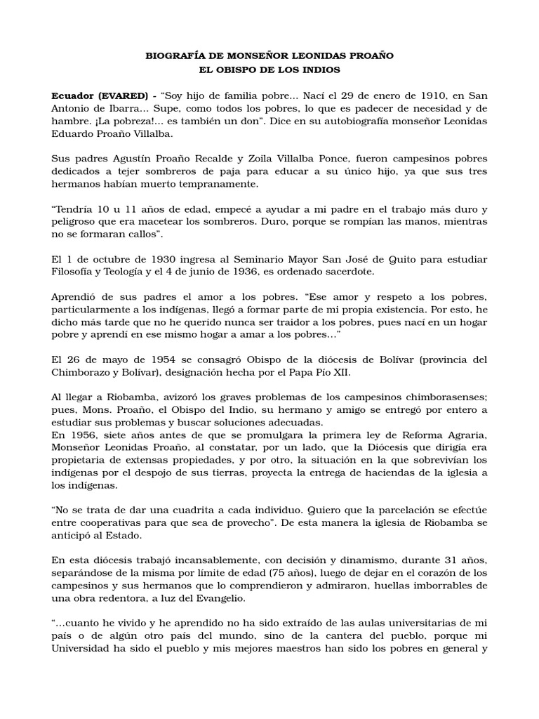 Ecuador (EVARED) - Soy hijo de familia pobre... Nac el 29 de enero de 1910, en San
